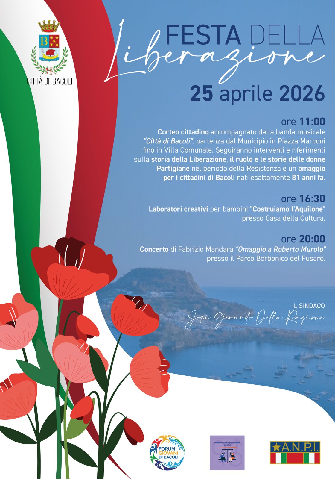 In occasione delle celebrazioni per il 25 Aprile, Festa della Liberazione, il Sindaco e l'amministrazione comunale di Bacoli hanno previsto il seguente programma:
