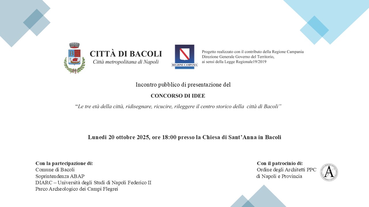 Concorso di idee: le tre età della città, ridisegnare, ricucire, rileggere il centro storico della Città di Bacoli: Incontro pubblico di presentazione del Concorso.